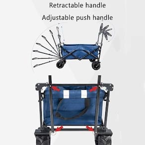 Carrinho Dobrável para CampingEspecificações:Estrutura: AçoSuporta até 100kgDobrável4 Rodas GiratóriasAlça inclinável e regulávelCaracterísticas:Estrutura principal feita de aço, proporcionando estabilidade e capacidade de carga de até 100kg.Bolsa interna feita de tecido Oxford 600D, resistente e elástica, com capacidade de carga de 100L.Alça ajustável em 90 para uma operação confortável.Rodas universais de rolamento duplo e rolamentos de direção de pressão nas rodas dianteiras de 360 para fácil manobrabilidade em vários terrenos.Fácil de dobrar em três etapas, ocupando pouco espaço no porta-malas ou armazenamento em casa.Aplicações:Ideal para transporte, compras, passeios em família, camping, praia, entre outros.Adequado para viagens, lazer, jardim, parque, e eventos ao ar livre.Oferece praticidade para movimentar objetos pesados.Material:Tecido Oxford de alta densidade, fácil de lavar e durável.Estrutura de aço com pintura epóxi, resistente à ferrugem.Dimensões e Peso:Dimensões abertas: 79 x 49 x 89 cmDimensões da bolsa: 62 x 42 x 25 cmCapacidade da bolsa em litros: 65 L aproximadamentePeso do produto: 6kgPeso suportado: 100kgDimensões fechado: 25 x 49 x 64 cmObservações:A alça telescópica e as rodas de 360 graus proporcionam controle fácil em vários terrenos.Dois bolsos de armazenamento de malha externos para pequenos objetos.Adequado para diversas atividades, desde piqueniques até idas à praia.Este carrinho dobrável é uma ferramenta indispensável para quem busca praticidade durante suas atividades ao ar livre.