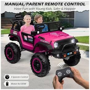 O veículo elétrico infantil OTTARO 24V oferece a possibilidade de trocar entre os modos 4WD e 2WD, equipado com quatro potentes motores de 100W para garantir uma potência forte e estável. O modo 4WD é ideal para superar obstáculos, enquanto o modo 2WD é eficiente em superfícies planas. Diferente dos carros com duas baterias de 12V em série, este carro elétrico possui uma única bateria de 24V que oferece até 12 horas de autonomia, dependendo do peso da criança e do tipo de terreno. Com capacidade para dois lugares de 20 polegadas e peso máximo de 59kg, é seguro e confortável para duas crianças de até 8 anos ou uma única criança de até 34 anos. Possui cintos de segurança e controle remoto para os pais, garantindo a segurança. Com sistema de freio suave, o carro para rapidamente em 0.5 segundos. A entrega é feita em dois pacotes devido a restrições logísticas. Dimensões: 121 x 84 x 82 cm (C x L x A). Diâmetro da roda: 35.5 cm. Peso máximo suportado: 50kg. Velocidade: 3.6-5.6 km/h. Bateria: 7AH. Tempo de reprodução: Aproximadamente 1 a 2 horas, variando de acordo com carga, velocidade e temperatura.