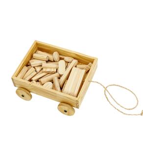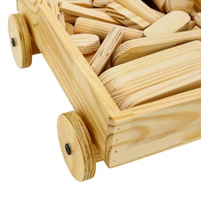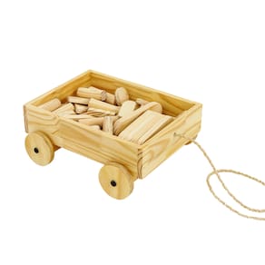 Considerado um brinquedo semi-estruturado, permite que além de brincar de puxar e carregar objetos, os blocos de madeira que acompanham a carriola podem ser utilizados para empilhar e criar os mais diversos cenários na brincadeira da criança.