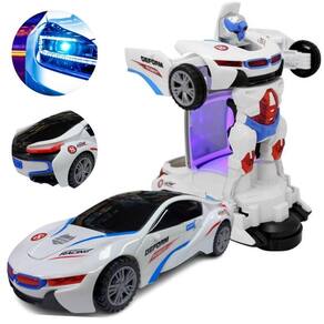 Um super carrinho que se transforma em robô, emite sons e acende luzes. Ele também gira em torno do seu próprio eixo. É pura diversão