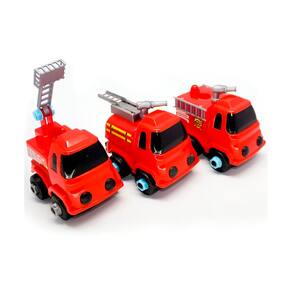Carro Cegonha 3 Carrinhos Monta Desmonta Vermelho Bombeiros -