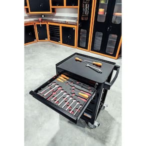 A linha de carros organizadores para ferramentas conta com modelos fechados, abertos e porta-cones. Os modelos possuem estrutura com paredes reforçadas, puxador ergonômico, rodas de borracha e sistema especial de travamento de gavetas, o que proporciona maior segurança, parado ou em movimento. Porque não basta ter a ferramenta certa, é preciso ter ela sempre à mão.