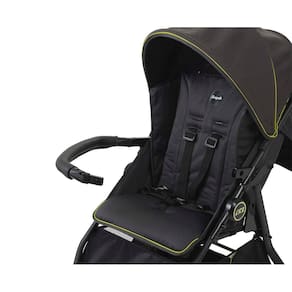 *Protetor frontal com acabamento externo em couro com um toque macio e confortável. *Amortecedores nas rodas dianteiras e traseiras. *Rodas dianteiras giratórias. *Encosto regulável em 4 posições. *Capota regulável e removível. *Freio traseiro conjugado. *Amplo cesto porta-objetos. *Cinto de segurança de 5 pontos. *Trava para fechamento.