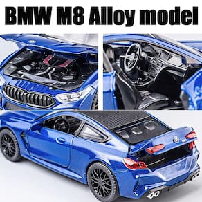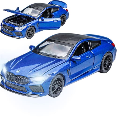 / - Tamanho do carro modelo BMW M8 escala 1:32: 5,9 × 2,75 × 1,75 cm. O tamanho certo para os pequenos pegarem. É feito de tinta à base de água não tóxica, por isso não contém formaldeído e outros carros prejudiciais para crianças de 3 a 5 anos. - Modelos de carros de brinquedo de alta qualidade: o modelo de carro é perfeito para meninos obcecados pelo BMW M8. Carro de brinquedo abrindo portas e compartimento do motor, o modelo de carro tem peças móveis, luzes e capô abertos para ver o motor. - Função: Modelo de carro, som e luz do motor. Pressione as duas rodas do carro dianteiro para acionar o som e as luzes do motor e abra a porta para acionar as luzes dianteiras e traseiras. Coloque o carro no chão, segure o corpo do carro e puxe-o para trás, o modelo de carro irá avançar. - Brinquedos de carro para presentes: embalagem requintada, funções interessantes, materiais sólidos, adequados para presentes de Natal e aniversário. Com uma coleção de lembranças para amigos e familiares. Pode ser exibido para aumentar a beleza e apreciação. - Material: Carro de brinquedo BMW M4 feito de liga de zinco e excelente material ABS, pneu de borracha, é mais forte e mais resistente à queda do que o plástico comum. Acabamento interno e externo detalhado. É feito de tinta à base de água não tóxica, por isso não contém formaldeído e qualquer outro prejudicial