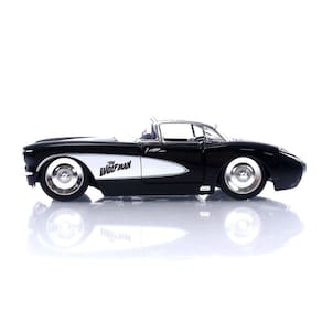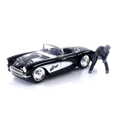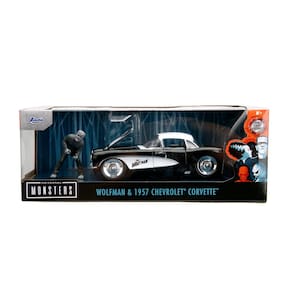 Universal Monsters 1:24 1957 Chevy Corvette Carro fundido e boneco Wolfman de 7 cm, brinquedos para crianças e adultos - Produto licenciado pela Wolfman - Inclui boneco Wolfman de 7 cm - Escultura altamente detalhada e detalhes de tinta metálica premium - Feitos de materiais duráveis, estes bonecos de metal 100% fundido são altamente detalhados com capô, portas e porta-malas de abertura - Adequado para idades a partir de 8 anos