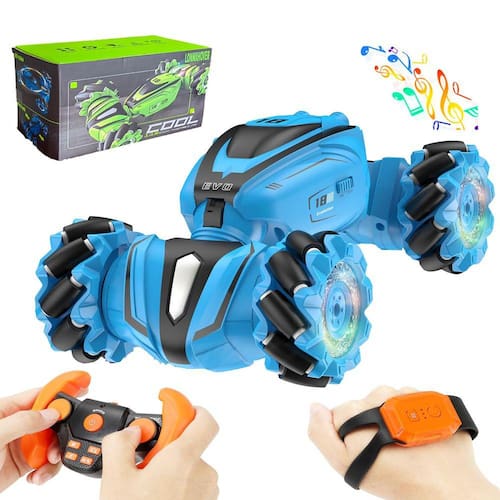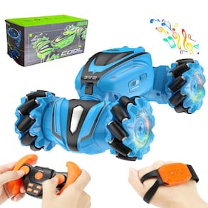 - O design exclusivo permite que este carro acrobático RC com sensor de gestos alterne livremente entre os modos rodoviário e off-road. O potente motor elétrico e o design de tração nas quatro rodas impulsionam o carro, permitindo que ele supere uma variedade de terrenos difíceis para uma ótima experiência de corrida ao ar livre.