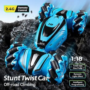 - Este carro RC é conhecido como carro acrobático RC, carro de drift RC ou carro de brinquedo RC. Seu transmissor opera em uma frequência de 2,4 GHz, com uma distância de controle de até 165 pés. Com a avançada tecnologia anti-interferência, vários carros podem jogar juntos sem interrupção do sinal. Se você está realizando acrobacias, drifting ou off-road, este carro versátil e confiável oferece uma experiência inesquecível