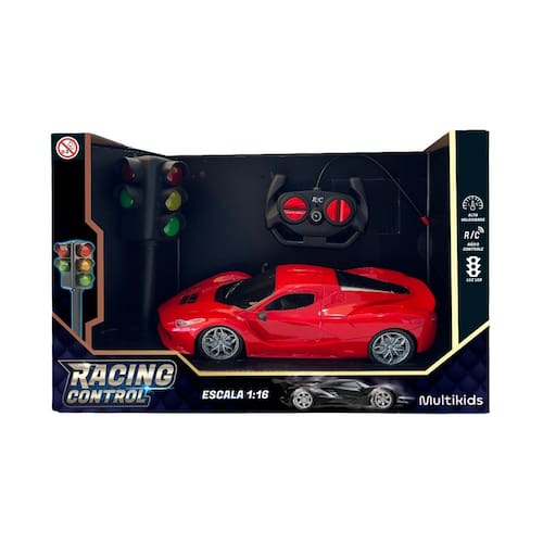 Simule a experiência de dirigir um carro de verdade com Racing Control! Racing Control Luzes de corrida é um super carrinho de controle remoto que alcança até 10 metros de distância, escala 1:16 e luz de LED nos faróis para deixar a brincadeira ainda mais realista. Por meio do seu controle remoto, viva a experiência e pilotar um rápido carro de corrida que anda para todas as direções. Acompanha um semáforo que funciona de verdade, que transforma cada largada em uma aventura cheia de emoção para os pequenos pilotos.