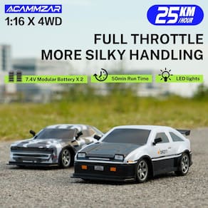 Carro de drift ACAMMZAR 1:16 RC, carros de controle remoto de alta velocidade 4WD de 25 KM/H para crianças, com luzes LED, duas baterias, pneus extras, carros Drift RC para adultos