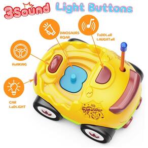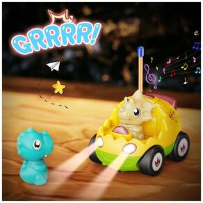 Este conjunto inclui dois carros de controle remoto em forma de ovo para crianças, com recursos de música, som e luz. Além disso, vem com duas figuras de dinossauros intercambiáveis e dois controles remotos que movem os carros para frente e para trás para a esquerda. Os carros são fáceis de mover para qualquer lugar graças aos controles remotos de botões grandes. Ambos os carros podem ser jogados ao mesmo tempo e têm sons de motor realistas, música, sons de buzinas e faróis piscando.