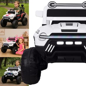 O Jipe Sparkle Safari 12V está disponível nas cores branca e rosa, com um visual marcante e cheio de estilo para agradar crianças de diferentes gostos.