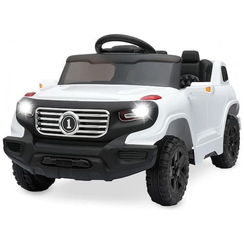 Este carro infantil tem um design realista com um acelerador de pedal, faróis de LED e uma buzina integrada, proporcionando uma experiência autêntica para as crianças que estão dirigindo pela primeira vez. Os pais podem escolher entre o controle manual ou remoto para orientar seus filhos, com controles de avanço e ré, função de estacionamento e seleção de velocidade. Há também uma tomada AUX integrada para que as crianças possam conectar seus dispositivos de mídia e tocar suas músicas favoritas enquanto dirigem. A bateria recarregável de 6V inclui um carregador para garantir horas de diversão e aventuras emocionantes para seus filhos. Com uma velocidade máxima de 3 km/h, os pequenos podem navegar através de calçadas ou estacionamentos a uma velocidade controlada, mas emocionante. As dimensões gerais deste produto são 95,25 cm x 60,96 cm x 49,53 cm, com uma capacidade de peso de até 19,95 quilos.