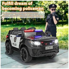 Este carro de polícia infantil é o melhor presente para seus filhos, com sirenes, alto-falantes e luzes policiais piscantes, proporciona às crianças a experiência mais realista de dirigir um carro de polícia e realiza seus sonhos de se tornar um policial.