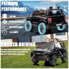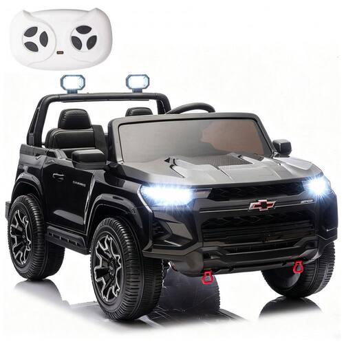 O carrinho elétrico infantil licenciado Chevrolet Colorado 24V da Nitoess é equipado com tração 4WD, bateria de 24V, motor potente e assentos duplos, suportando até 61 kg para duas crianças com conforto e segurança. Possui rodas de EVA de alta qualidade, proporcionando dirigibilidade estável em diversos terrenos como concreto, grama e cascalho.
