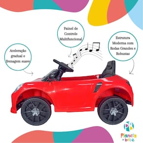 Com muito estilo, segurança e interatividade, ele tem um visual moderno inspirado nos modelos de luxo, perfeito para conquistar o coração dos pequenos. Oferece uma experiência completa de direção com duas maneiras de brincar: a criança pode pilotar sozinha como um verdadeiro motorista ou o adulto pode assumir o controle através do controle remoto.