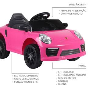 Carro Elétrico Infantil Conversível Carrinho De Passeio Motorizado Esportivo 12V Rosa Controle Usb Mini esportiva 12v - rosa