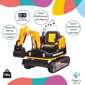Escavadeira Elétrica Infantil Com Controle Remoto - Zippy Toys Transforme a brincadeira ao ar livre em uma verdadeira aventura de construção com a Escavadeira Elétrica da Zippy Toys Com um design super realista e cheio de funcionalidades, ela é perfeita para os pequenos que adoram explorar e se sentir no comando de grandes máquinas. Seu braço articulado com movimento manual permite simular escavações de verdade, desenvolvendo a coordenação motora e estimulando a imaginação. Fácil de dirigir, com dois níveis de velocidade e duas marchas frente e ré , ela conta com um único pedal de aceleração e frenagem, permitindo que as crianças dirijam com confiança. A escavadeira pode ser controlada tanto pela criança quanto por um adulto através do controle remoto, oferecendo liberdade com supervisão. Os faróis de LED iluminam o caminho e tornam a experiência ainda mais realista, enquanto os efeitos sonoros e as músicas garantem ainda mais diversão. Além disso, seu painel multifuncional integrado possui entradas auxiliar, USB e MicroSD, permitindo reproduzir as músicas favoritas da criança diretamente no brinquedo. E, para os momentos mais tranquilos, pode ser utilizado a função ninar, para desacelerar a brincadeira. Desenvolvida com foco na segurança, a escavadeira conta com pedal de aceleração gradual, frenagem suave e um assento anatômico com cinto de segurança, proporcionando conforto e proteção durante toda a aventura. Mais do que um brinquedo, ela é uma ferramenta para o desenvolvimento das habilidades motoras, concentração e confiança. Cada escavação e cada volta ao ar livre são oportunidades para crescer com autonomia e diversão. Com a Escavadeira Elétrica da Zippy Toys, a diversão está garantida em todos os momentos Principais Características: - Idade Recomendada: A Partir de 3 anos - Peso Máximo Suportado: 30kgs - Possui 2 Marchas Frente e Ré - Articulação Manual - Alto Desempenho e Durabilidade - Pedal de Aceleração / Frenagem - Aceleração Gradual e Frenagem Suave - Faróis em LEDs Brilhantes que Acendem - Bateria Recarregável de 12v - Possui Sons e Música - Possui Função Ninar - Possui Entradas Auxiliar, USB e MicroSD - Assento Confortável - Cinto de Segurança - Possui 2 Níveis de Velocidade - Velocidade Máxima 2-5km/h - Acompanha Controle Remoto - Necessário 2 Pilhas AAA não inclusas Especificações Técnicas: - Conteúdo da Embalagem: 1 Escavadeira Elétrica Infantil - Zippy Toys + Manual de Instruções. - Dimensões do Produto AxLxP : 55,0 x 90,0 x 130,0cm - Composição/Material: Plástico - Alimentação: Bateria Recarregável 12v - Peso: 23,800kgs - : 90 dias Contra Defeitos de Fabricação Pelo Fabricante - Certificação: 004499/2023 - Código do Fabricante: 10276 - EAN: 7908216131538 - Marca: Zippy Toys Imagens Meramente Ilustrativas. As cores e estampas podem variar de acordo com o lote do fabricante. Homologação Inmetro: IP-BRI-0010/2022-76