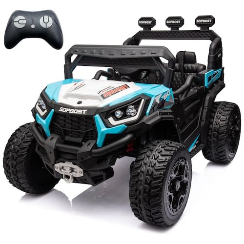 Durabilidade e Capacidade: Fabricado com um corpo de plástico PP durável e certificado pela ASTM F963, o UTV suporta uma carga máxima de 49,89 kg e alcança uma velocidade máxima de até 8 km/h. É um presente ideal para aniversários, Dia de Ação de Graças, Natal, Ano Novo e outras ocasiões especiais.