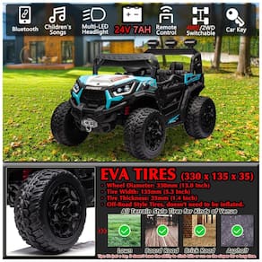 Design Realista e Aventura Off-Road: Com um design inspirado em UTV Off-Road, o carrinho possui partida com chave, cinto de segurança ajustável, luzes LED brilhantes e portas duplas com trava. A estrutura elevada e as rodas à prova de explosão e resistentes ao desgaste garantem um estilo off-road autêntico, permitindo que seus filhos explorem terrenos acidentados com segurança.