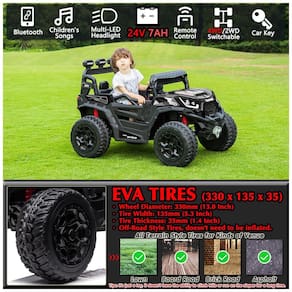 Durabilidade e Capacidade: Fabricado com um corpo de plástico PP durável e certificado pela ASTM F963, o UTV suporta uma carga máxima de 49,89 kg e alcança uma velocidade máxima de até 8 km/h. É um presente ideal para aniversários, Dia de Ação de Graças, Natal, Ano Novo e outras ocasiões especiais.