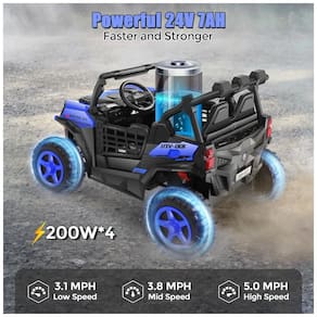 Este Carro Elétrico Infantil da Hikole é equipado com motores potentes de 4x200 W e uma bateria de 24V, proporcionando um desempenho robusto. As quatro rodas grandes antiderrapantes de EVA têm padrões claros e são resistentes ao desgaste, permitindo que o carrinho navegue facilmente por diferentes tipos de terreno no modo 4WD. Para uma condução mais tranquila e maior duração da bateria, você pode alternar para o modo 2WD.