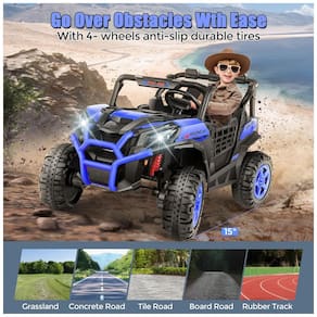 Para garantir a segurança das crianças, o carrinho vem com cinto de segurança ajustável, portas de malha com trava dupla, absorção de choque e um sistema de partida e parada suave. Feito de plástico PP durável e certificado pela ASTM e CPSIA, o Carro Elétrico Infantil Off Road é um presente ideal e um companheiro divertido para os pequenos.