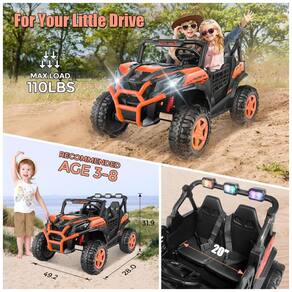 Para garantir a segurança das crianças, o carrinho vem com cinto de segurança ajustável, portas de malha com trava dupla, absorção de choque e um sistema de partida e parada suave. Feito de plástico PP durável e certificado pela ASTM e CPSIA, o Carro Elétrico Infantil Off Road é um presente ideal e um companheiro divertido para os pequenos.