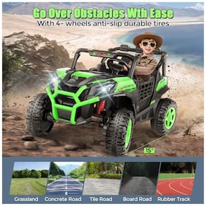 Para garantir a segurança das crianças, o carrinho vem com cinto de segurança ajustável, portas de malha com trava dupla, absorção de choque e um sistema de partida e parada suave. Feito de plástico PP durável e certificado pela ASTM e CPSIA, o Carro Elétrico Infantil Off Road é um presente ideal e um companheiro divertido para os pequenos.