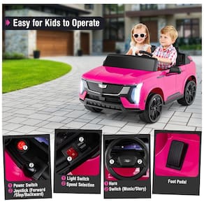 Marca: Costzon Modelo: Licensed Cadillac 24V 2 Lugares Cor: Rosa Dimensões (LxPxA): 115 cm x 80 cm x 55 cm Peso do Produto: 21,5 kg Peso do Pacote (produto + embalagem): Aproximadamente 24 kg Capacidade máxima de peso: 40 kg Bateria: 24V 7Ah recarregável Motores: 2 motores de 65W Velocidade: Ajustável entre 3 e 6 km/h Suspensão: 4 rodas com suspensão de mola Assentos: 2 bancos com cintos de segurança ajustáveis Recursos adicionais: Controle remoto parental 2.4GHz, luzes LED, buzina, música integrada, painel LED, portas com trava, partida suave Idade recomendada: A partir de 3 anos Material: Plástico resistente (PP), componentes metálicos Montagem: Obrigatória antes do uso Marca: Não Informado