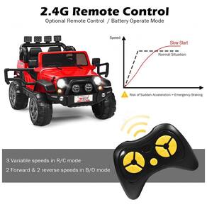 Caminhão de 2 lugares real Projetado com 2 lugares com cinto de segurança, este passeio de 12V em caminhão foi projetado para 2 crianças com 3 anos ou mais para brincar e aproveitar a emoção de dirigir juntas. E luzes LED, portas duplas magnéticas com trava, funções para frente e para trás e a função de ajuste de velocidade de três níveis proporcionam ao seu filho uma experiência real de direção. Modos de condução de dupla via As crianças podem dirigir esses carros movidos a bateria de 2 lugares por conta própria, manipulando o interruptor de velocidade e o pedal, oferecendo às crianças uma experiência de condução autêntica. Os pais também podem operar o passeio em caminhão com controle remoto para desfrutar de um feliz tempo entre pais e filhos. Melhor ainda, o controle remoto está equipado com 3 modos de velocidade alteráveis e um botão de emergência para garantir a segurança das crianças. Iniciar lentamente para garantir a segurança A tecnologia de partida e parada lenta protege efetivamente seus pequenos da aceleração não intencional e da frenagem abrupta. Com cintos de segurança e portas com trava dupla, as crianças podem sentar se firmemente no carro. Além disso, há um corrimão de segurança no lado do passageiro, adicionando segurança extra. Projeto durável e humanizado Feito de ferro e material PP estritamente selecionados, este passeio de 2 lugares em caminhão é resistente e resistente ao desgaste o suficiente para suportar capacidade de peso de até 50 kg. Enquanto isso, quatro rodas têm um desempenho impressionante em resistência ao deslizamento e absorção de choques, tornando esses carros elétricos para 2 crianças adequados para serem s em cimento, estrada de asfalto, piso de madeira. A roda e o capuz adicionais podem ser abertos como caixas de zenamento para brinquedos. Presente perfeito para crianças Vem com a função de contar histórias e tocar música, este passeio de 2 lugares em caminhão é um maravilhoso presente de aniversário ou Natal para meninos ou meninas, e esse passeio de 12V em caminhão pode chegar a aproximadamente 3 6 km, h, para que eles fiquem emocionados em fazer uma aventura. Dimensão geral: Aproximadamente 123,19 x 80,01 x 80,01 centímetros Marca: Não Informado