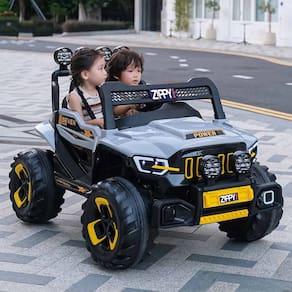 Carro Elétrico Infantil - Super Cross 4x4 - 12v - Cinza - Zippy Toys: O Super Cross é um carro off-road elétrico para crianças aventureiras com 2 modos de direção: através do controle remoto ou pela direção. Com um design robusto, elegante e moderno, esse veículo elétrico infantil é o sonho de toda criança. O Super Cross Zippy Toys possui potente tração 4x4, o que o torna capaz de enfrentar qualquer terreno. Este veículo elétrico off-road infantil com 2 lugares tem alto desempenho e grande potência para qualquer passeio Com duas formas de brincar: • A criança dirigindo: permite à criança pilotá-lo como um veículo de verdade. • Adulto controlando: o adulto pode controlar o carrinho através do controle remoto Detalhes: • 2 lugares: com espaço para duas crianças (diversão compartilhada entre amigos ou irmãos) • Ronco do motor realístico • Buzina e melodias no som MP3 • Luz • Cinto de segurança • Haste de puxação • Função swing • Controle remoto Bluetooth: 3 modos de velocidade • Painel com entradas para cartão MP3/USB/SD • 4 rodas com suspensão • Portas duplas que abrem de verdade Interior: • Painel de controle com câmbio/transmissão automática (caixa de velocidades) com seleção de baixa/alta velocidade e ré • Engrenagens para frente / para trás • Volante de três raios • Sistema MP3: conecte o celular via cabo auxiliar, além de entradas USB e SD para cartão de memória/pen drive, reproduzindo som MP3 nos alto-falantes do painel do carro (ainda há botões de som no volante para ouvir as músicas favoritas) • Pedal do acelerador Segurança: • Freio automático: quando o pedal do acelerador é liberado (desacelerado), o freio é acionado (emergência do controle remoto) • Cinto de segurança ajustável • Abertura de portas: abrem para fácil acesso e saída do carro • Luzes em LED nos faróis dianteiros e lanternas traseiras Conforto: • Banco estofado macio revestido em couro sintético com 2 lugares • Suspensão nas quatro rodas (4x4) • Pneus em E.V.A.: resistente (alta durabilidade contra o desgaste e não furam), leves e macios (absorve impactos). Proporcionam também estabilidade. Informações: • Produto: Carro Elétrico Super Cross 4x4 • Marca: Zippy Toys • Tipo: Carro Elétrico Infantil • Categoria: Veículo Elétrico Infantil • Dimensões (C x A x L): 138 x 90 x 94 cm • Peso máximo suportado: até 30 kg • Velocidade aproximada: 3 a 6 km/h • Conteúdo: - 01 Carro Elétrico - 01 Controle Remoto 2.4g - 01 Carregador Bivolt - 01 Manual de Instruções • Recomendação: para crianças de 03 a 08 anos de idade Especificações: • Modelo: CE23433 Carro Elétrico Super Cross 12v Cinza • Referência: 9967 • Código de Barras: 7908216129979 • Embalagem (C x A x L): 125 x 75 x 53 • Embalagem (Peso): 31.6 kg • Material / Composição: Plástico ABS • Funcionamento: Bateria e Pilha - Controle Remoto: 2 pilhas AAA 1.5V - Carro: bateria: 12v • Alcance aproximado do controle remoto: 30 metros • Registro: 004499/2023 • Certificado: Órgãos Autorizados - OCP´S (Organismos de Certificação de Produtos) Aviso: • As imagens são meramente ilustrativas • Os pesos, tamanhos e medidas são aproximados • As cores e estampas dos produtos podem ter variações • As informações são de responsabilidade do fabricante ou fornecedor