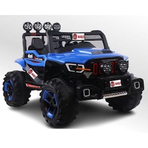 No painel de controle, alterna entre frente e ré; tem botão para ligar e desligar o Jipe; luzes de LED no farol dianteiro e na traseira; aceleração no pedal; emite sons como músicas, buzina e barulho de motor. Ambas as portas abrem, proporcionando à criança ainda mais conforto e diversão e possui assento anatômico com cinto de segurança, para tranquilidade dos pais. Para deixar o Jipe mais real, possui para-brisa, para-choque e faróis decorativos em cima e na frente (apenas decorativos).