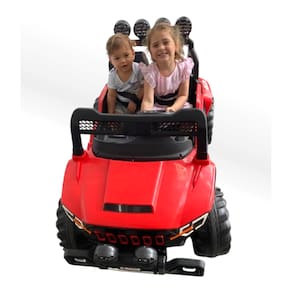 No painel de controle, alterna entre frente e ré; tem botão para ligar e desligar o Jipe; luzes de LED no farol dianteiro e na traseira; aceleração no pedal; emite sons como músicas, buzina e barulho de motor. Ambas as portas abrem, proporcionando à criança ainda mais conforto e diversão e possui assento anatômico com cinto de segurança, para tranquilidade dos pais. Para deixar o Jipe mais real, possui para-brisa, para-choque e faróis decorativos em cima e na frente (apenas decorativos).