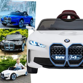 O Veículo Elétrico BMW i4 Gran Coupé 12V da Zippy Toys está disponível na cores Branco e Azul. É perfeito para presentear meninos e meninas!