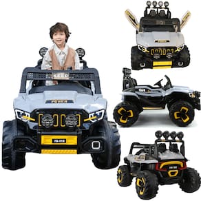 O Veículo Elétrico Jipe Super Cross 4x4 12V com Controle Remoto da Zippy Toys está disponível nas versões cinza e azul. É perfeito para presentear meninos e meninas!