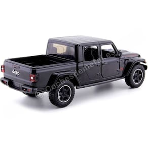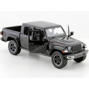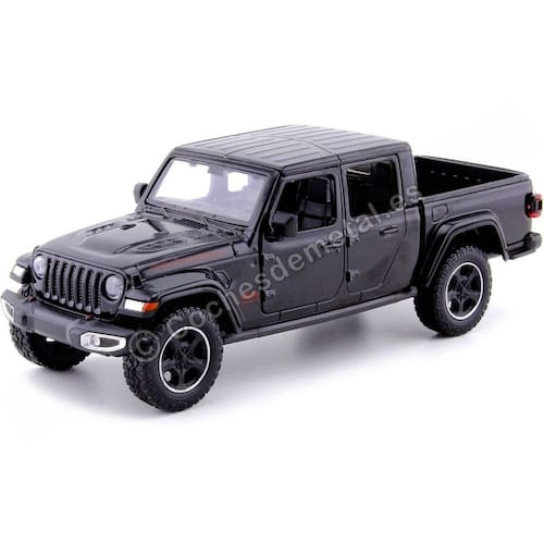 - Modelo diecast altamente detalhado do Jeep Gladiator Rubicon 2021 na cor preta, com capota rígida fechada.