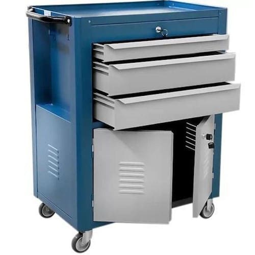 - Pintura eletrostática na cor Azul e Cinza nas Gavetas e portas