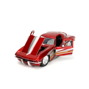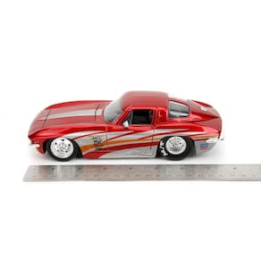 Carro fundido sob pressão Jada Big Time Muscle 1:24 1963 Chevy Corvette Stingray, brinquedos para crianças e adultos (vermelho/prata)