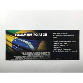 Carro 1/43 F1 TOLEMAN TG183B AYRTON SENNA BRASIL GP 1984 (717) - Escala 1/43 de metal - Carro aparafusado na base e apresentado em uma caixa de acrílico