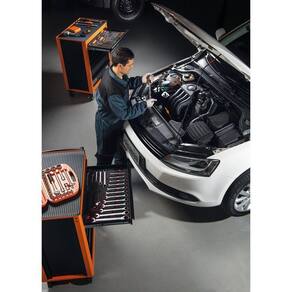 A linha de carros organizadores para ferramentas conta com modelos fechados, abertos e porta-cones. Os modelos possuem estrutura com paredes reforçadas, puxador ergonômico, rodas de borracha e sistema especial de travamento de gavetas, o que proporciona maior segurança, parado ou em movimento. Porque não basta ter a ferramenta certa, é preciso ter ela sempre à mão.