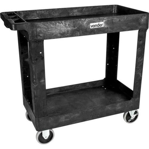 Possui estrutura compacta com 2 bandejas. De fácil manuseio, proporciona praticidade e mobilidade no dia a dia. Sua fabricação robusta em polipropileno não oxida. Rodízios de borracha termoplástica com freio, dimensões: 12,5 cm x 2,6 cm (2 fixos e 2 giratórios).