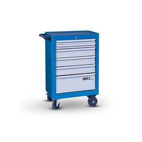 Carrinho de Ferramenta com 1 Bandeja e 6 Gavetas é fabricado em chapas de aço carbono resistentes, recebe tratamento de superfície anticorrosivo e finalmente recebe um acabamento de tinta eletrostática a pó.
