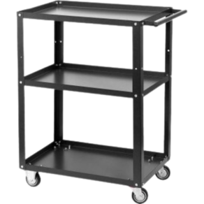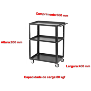 Possui alça para empurrar/puxar e 4 rodízios de 3", sendo 2 fixos e 2 giratórios.