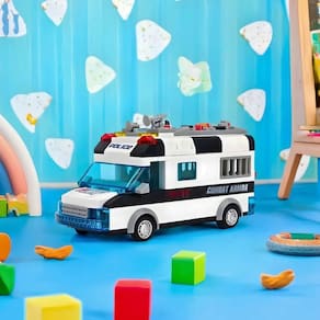 Carro Policia 77 Peças Lego Brinquedo Com Luz Som