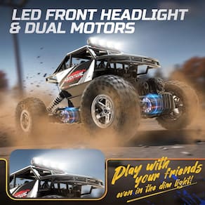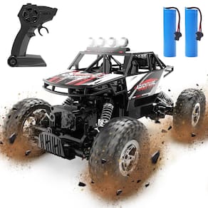 Carro de controle remoto DEERC DE45 RC Cars 1:14 Off Road Monster Truck, farol LED Metal Shell 4WD Dual Motors Rock Crawler, caminhão de hobby todo-terreno de 2,4 GHz com 2 baterias para 90 minutos de jogo, presentes para meninos e adultos - 4X4 RC OFF-ROAD ROCK CRAWLER EM ESCALA 1:14: O carro de controle remoto com tração nas 4 rodas está equipado com uma concha de metal de alta qualidade, o botão de acabamento para controle de direção, motores duplos pode suba 45° de forma excelente para escalar objetos em ambientes internos/externos, e a cabine de simulação trará um carro mais realista e uma melhor experiência de cross-country. É a melhor escolha para entusiastas de caminhões RC monstros de qualquer nível. - 2 BATERIAS RECARREGÁVEIS COM TEMPO DE FUNCIONAMENTO PROLONGADO: Equipado com DUAS baterias recarregáveis de alta qualidade de 3,7 V/1200 mAh, você pode se divertir dirigindo por cerca de 90 minutos (45 minutos para cada bateria), dependendo da operação. O cabo de carregamento USB proporcionará grande comodidade para carregar o carro RC. NÃO PARE OS GRANDES MOMENTOS. - SINAL INDEPENDENTE SEM INTERFERÊNCIA: Equipado com um sistema de controle remoto de 2,4 GHz, o que ele faz é oferecer um sinal estável e ter uma função de não interferência. Ele pode evitar a interferência do sinal quando vários veículos estão jogando ao mesmo tempo. A distância de controle é de cerca de 165 pés. O que permite que seus filhos e seus amigos brinquem juntos, compartilhem juntos. É um ótimo monster truck off-road para ambientes internos e externos. - EXCELENTE EXPERIÊNCIA DE CONDUÇÃO ANTICOLISÃO E ANTIDERRAPANTE: As quatro rodas estão todas equipadas com pneus antiderrapantes e amortecedores que dão suporte a quedas inesperadas e à superfície instável do solo. A frente da carroceria tem um para-choque anticolisão para proteger efetivamente a carroceria e a estrutura, permitindo que você dirija o carro RC em todos os terrenos, como praia, areia, rocha ou estrada de concreto. - BRINQUEDOS DE CARRO RC DE ALTO DESEMPENHO: Cada detalhe mostra nosso produto mais divertido. Neste carro RC DEERC com farol de LED, você será o foco das pessoas. Onde quer que você possa jogar. Espere seu trabalho, saia com seus filhos e aproveite o tempo com a família. O brinquedo RC 4WD perfeito é um presente indispensável para o aniversário ou qualquer festival.