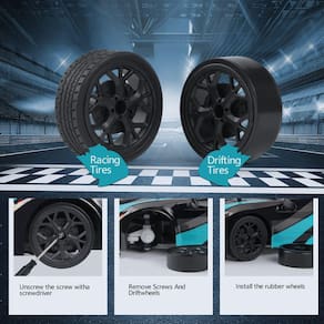 - Racing Drift: O carro de brinquedo com controle remoto está equo com 4 pneus de corrida e 4 pneus Drift. Você só precisa desse carro de drift para experimentar a diversão de correr e drift. Os dois tipos de pneus podem ser desmontados e substituídos, o que é conveniente de usar em vários locais.