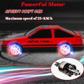-?Configuração de pneus?O carro Drift vem com pneus de corrida de 4 velocidades e 4 pneus de drift. Quando quiser exibir este carro de drift de alta velocidade com acrobacias, você pode derrapar em pranchas lisas, ladrilhos, pistas com melhor manuseio e agilidade perfeita, e quando quiser torná-lo um carro esportivo, os pneus de corrida serão sua melhor escolha.