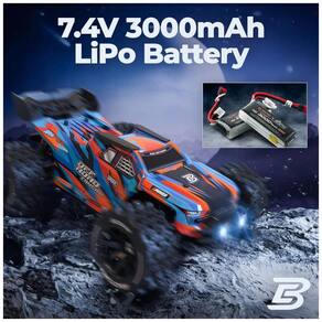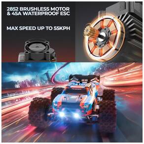 Projetado para conquistar uma variedade de terrenos difíceis, como estradas de montanha esburacadas, praias arenosas e estradas acidentadas, o sistema de suspensão independente e os pneus de borracha flexíveis apresentam excelente tração para facilitar aos carros de corrida RC a conquista de obstáculos facilmente. O modelo é à prova d água e ideal para emocionante exploração offroad.