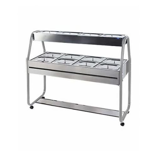 – 8 Cubas Gastronômicas (GNs) em aço Inox AISI430 parte aquecida;