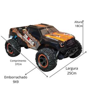 O Veículo The Rock Garagem S.A. Vai encantar os amantes de carros Um incrível veículo de controle 7 funções com bateria recarregável que pode ser pilotado para todas as direções, um design arrojado de pick-up e detalhes impressionantes como: suspensão, grandes pneus de borracha e para-choque Ele é feito de plástico bolha, por ser leve e resistente possibilita a alta performance, perfeito para grandes obstáculos. Seu controle remoto é de 2.4 GHz, por ser multifrequência permite um alcance maior. A brincadeira vai ficar muito mais radical com o Veículo The Rock Garagem S.A.
